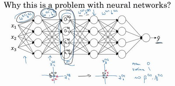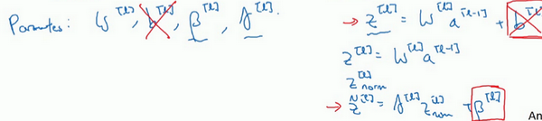 所以,如果你在使用Batch归一化,其实你可以消除这个参数(),或者你也可以,暂时把它设置为0,那么,参数变成,然后你计算归一化的,,你最后会用参数,以便决定的取值,这就是原因。