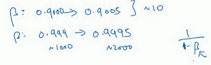 所以,如果你想研究更多正式的数学证明,关于为什么我们要这样做,为什么用线性轴取值不是个好办法,这是因为当 接近1时,所得结果的灵敏度会变化,即使有微小的变化。所以 在0.9到0.9005之间取值,无关紧要,你的结果几乎不会变化。