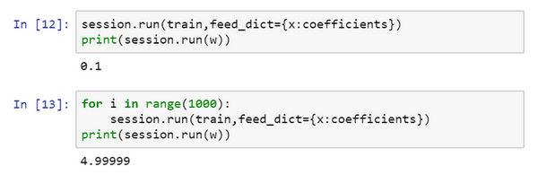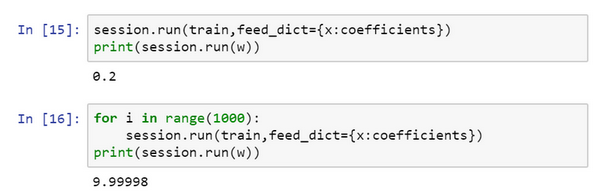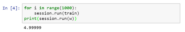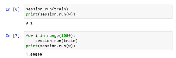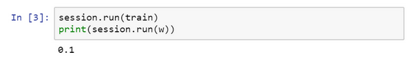 #接下来在运行了一步梯度下降法后,让我们评估一下w的值,再print:print(session.run(w))