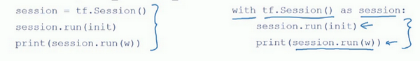 session.run(init)#来初始化全局变量。#然后让TensorFlow评估一个变量,我们要用到:session.run(w)