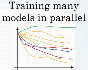 另一种方法则是同时试验多种模型,你设置了一些超参数,尽管让它自己运行,或者是一天甚至多天,然后你会获得像这样的学习曲线,这可以是损失函数J或实验误差或损失或数据误差的损失,但都是你曲线轨迹的度量。同时你可以开始一个有着不同超参数设定的不同模型,所以,你的第二个模型会生成一个不同的学习曲线,也许是像这样的一条(紫色曲线),我会说这条看起来更好些。与此同时,你可以试验第三种模型,其可能产生一条像这样的学习曲线(红色曲线),还有另一条(绿色曲线),也许这条有所偏离,像这样,等等。或者你可以同时平行试验许多不同的模型,橙色的线就是不同的模型。用这种方式你可以试验许多不同的参数设定,然后只是最后快速选择工作效果最好的那个。在这个例子中,也许这条看起来是最好的(下方绿色曲线)。