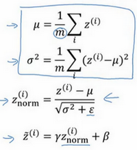 类似的工作,你会在第二个mini-batch()上计算,然后用Batch归一化来计算,所以Batch归一化的此步中,你用第二个mini-batch()中的数据使归一化,这里的Batch归一化步骤也是如此,让我们来看看在第二个mini-batch()中的例子,在mini-batch上计算的均值和方差,重新缩放的和得到,等等。