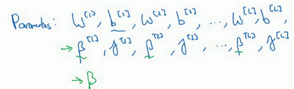 最后,请记住的维数,因为在这个例子中,维数会是,的尺寸为,如果是l层隐藏单元的数量,那和的维度也是,因为这是你隐藏层的数量,你有隐藏单元,所以和用来将每个隐藏层的均值和方差缩放为网络想要的值。