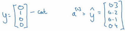 接下来我们来看怎样训练带有Softmax输出层的神经网络,具体而言,我们先定义训练神经网络使会用到的损失函数。举个例子,我们来看看训练集中某个样本的目标输出,真实标签是