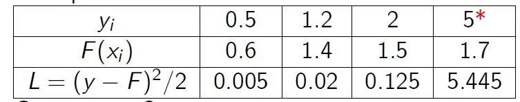 但要注意,基于残差 GBDT 容易对异常值敏感,举例: