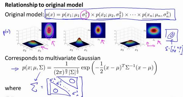多元高斯分布模型与原高斯分布模型的关系: