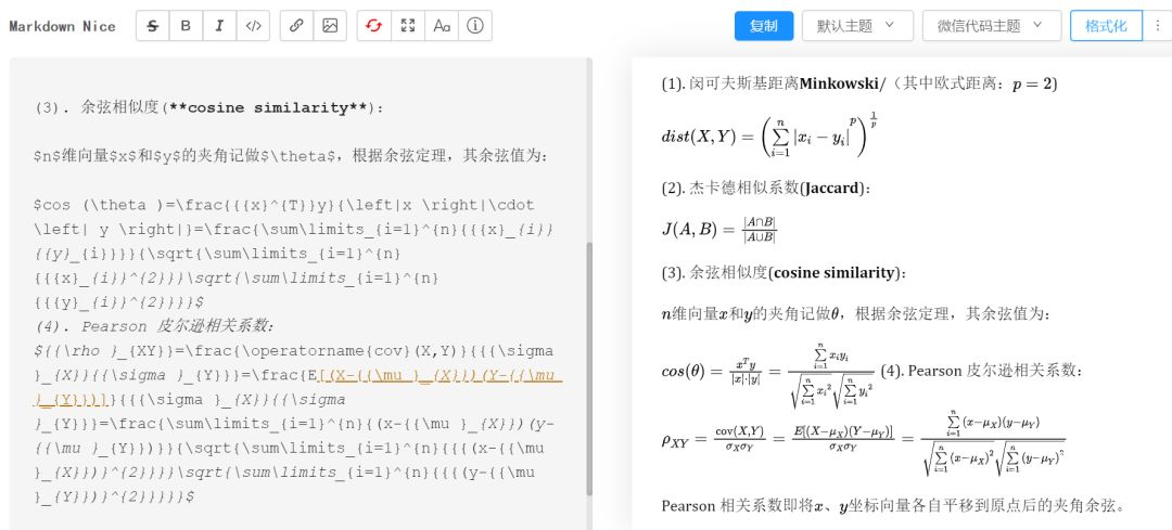 左边贴入markdown源代码,右边会自动生成markdown格式显示的文件,点击格式化,复制,即可粘贴到公众号使用。排版格式与typora几乎一致!