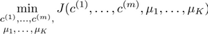 其中代表与最近的聚类中心点。我们的的优化目标便是找出使得代价函数最小的 ,,...,和,,...,: