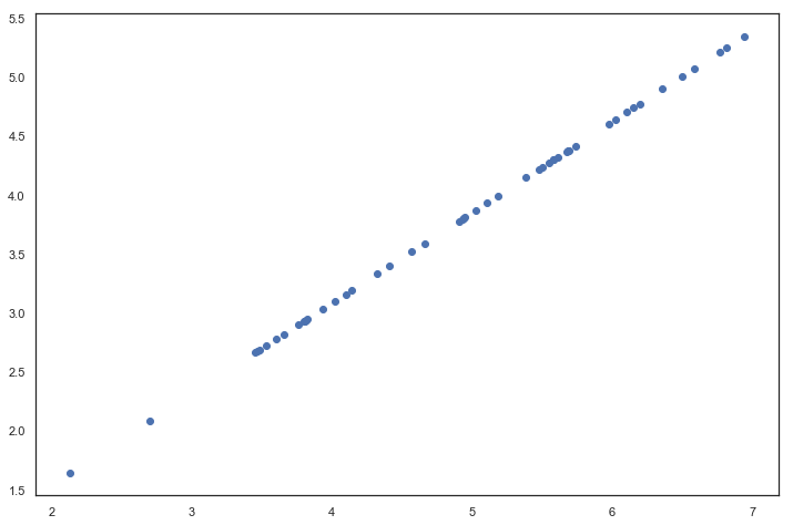 ax.scatter(list(X_recovered[:, 0]), list(X_recovered[:, 1]))