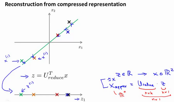 def recover_data(Z, U, k):U_reduced = U[:,:k]return np.dot(Z, U_reduced.T)