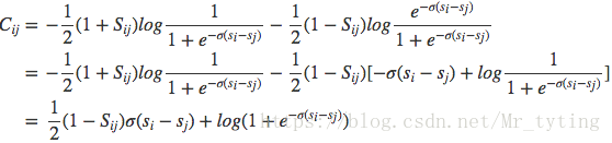 lambda_ij = 1.0 / 2.0 * (1 - Sij) - 1.0 / \tf.exp(tf.log(1 + tf.exp(-tf.abs(-sigma_ij))) - tf.minimum(0.0, -sigma_ij))