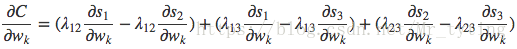 # dC/dw_k = \sum{lambda_ij * (ds_i/dw_k - ds_j/dw_k)}