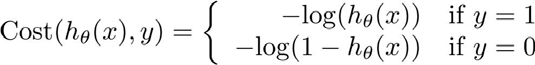 这样构建的函数的特点是:当实际的 且也为 1 时误差为 0,当 但不为 1 时误差随着变小而变大;当实际的 且也为 0 时代价为 0,当 但不为 0 时误差随着 的变大而变大。将构建的 简化如下: 带入代价函数得到: 即: