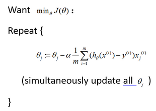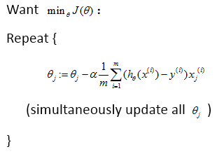 最小化代价函数的方法,是使用梯度下降法(gradient descent)。这是我们的代价函数: