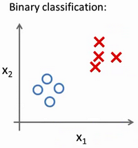 在分类问题中,我们尝试预测的是结果是否属于某一个类(例如正确或错误)。分类问题的例子有:判断一封电子邮件是否是垃圾邮件;判断一次金融交易是否是欺诈;之前我们也谈到了肿瘤分类问题的例子,区别一个肿瘤是恶性的还是良性的。