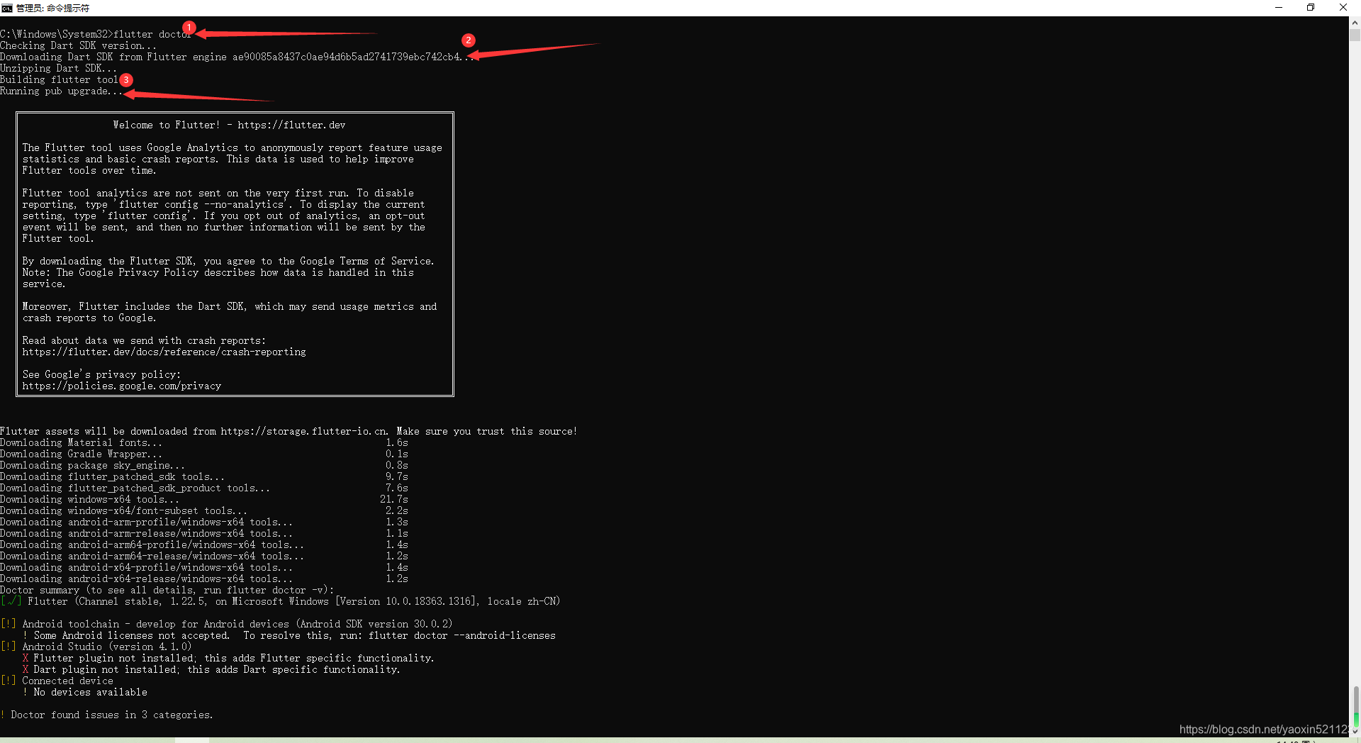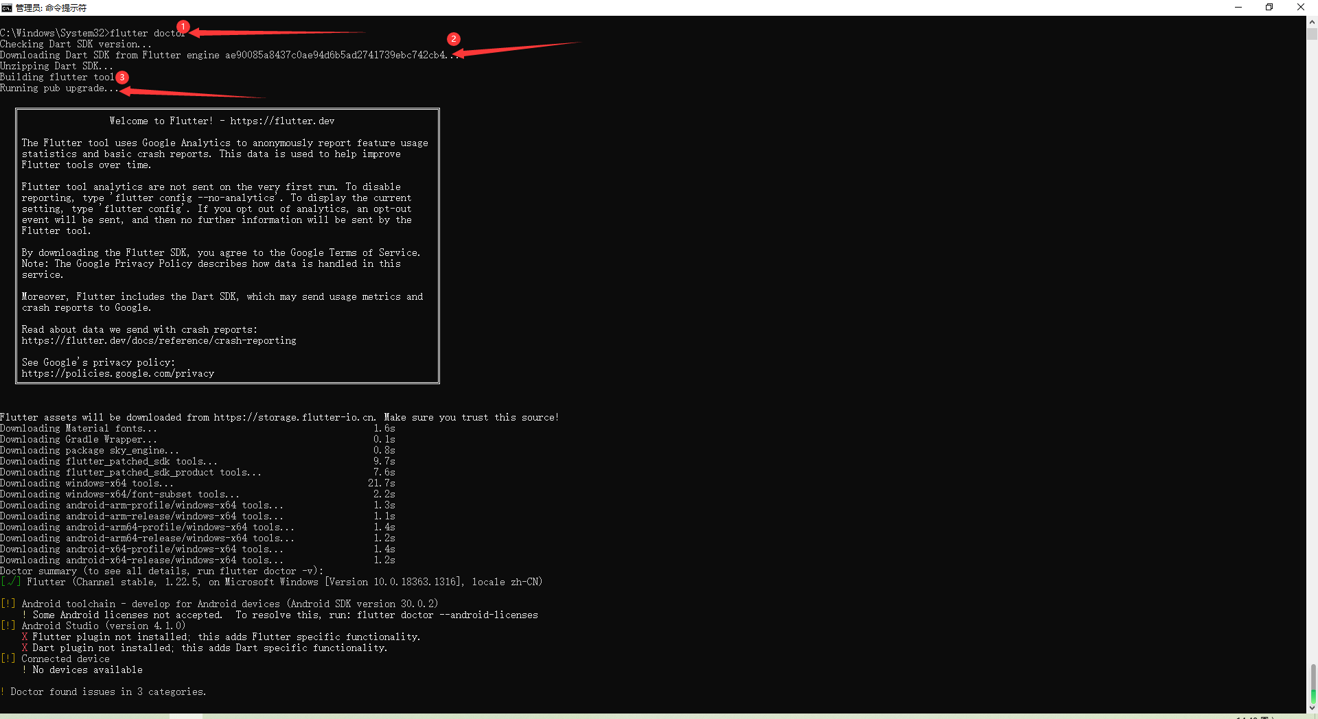 - 4. 命令行cmd中执行 `flutter doctor` 命令