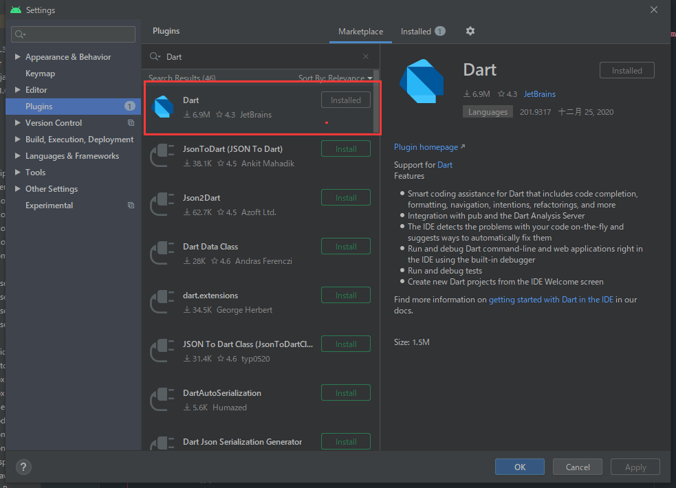 插件安装完成后,重启Android Studio新建项目会发现增加了创建Flutter项目的选项。