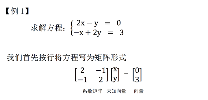 未知向量(x):将方程未知数提取出来,按列构成一个向量。