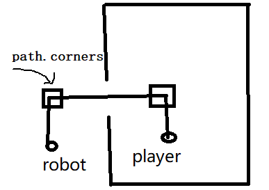 if (playerAnim.GetCurrentAnimatorStateInfo(0).IsName("Locomotion")){//计算当前rorbot的位置到player的位置的距离NavMeshPath path = new NavMeshPath();if (navAgent.CalculatePath(other.transform.position, path)){//path.corners存储了当前rorbot到player的位置的路径结点Vector3[] wayPoints = new Vector3[path.corners.Length];//对wayPoints进行赋值wayPoints[0] = transform.position;wayPoints[wayPoints.Length - 1] = other.transform.position;for (int i = 0; i < path.corners.Length - 1; i++){wayPoints[i + 1] = path.corners[i];}//计算距离float distance = 0;for (int i = 1; i < wayPoints.Length; i++){distance += (wayPoints[i] - wayPoints[i - 1]).magnitude;}if (distance < collider.radius){alertPosition = other.transform.position;}}}