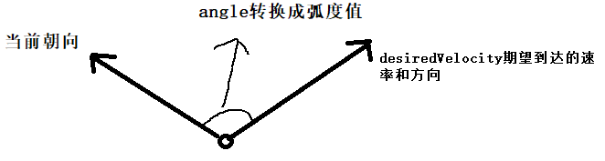 那么如何判断desiredVelocity的方向是在当前方向的左边还是右边呢,此时要用到数学的叉乘(左手定则),若向量的叉积为正,则目标朝向在当前方向的右边,弧度制为正,反之为负