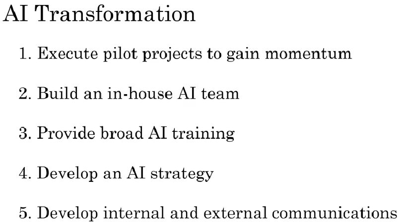 只有在执行了一两个项目之后才去建立一个AI策略,否则它将成为一个学术策略而不是实际策略。不同的公司有不同的战略。