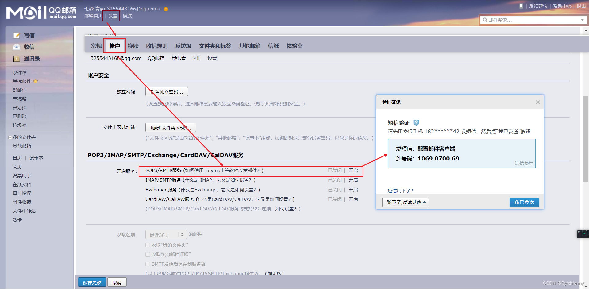 配置项查找1. node_modules2. nodemailer3. lib4. well-known5. services.jsonsmtp 获取方式1. 到邮箱内2. 设置3. 账户4. 开启 POP3/SMTP服务 (需要发短信验证)