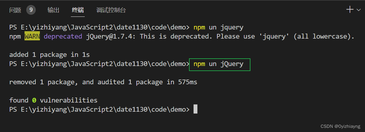 - 卸载命令 npm uninstall 包名 || npm un 包名