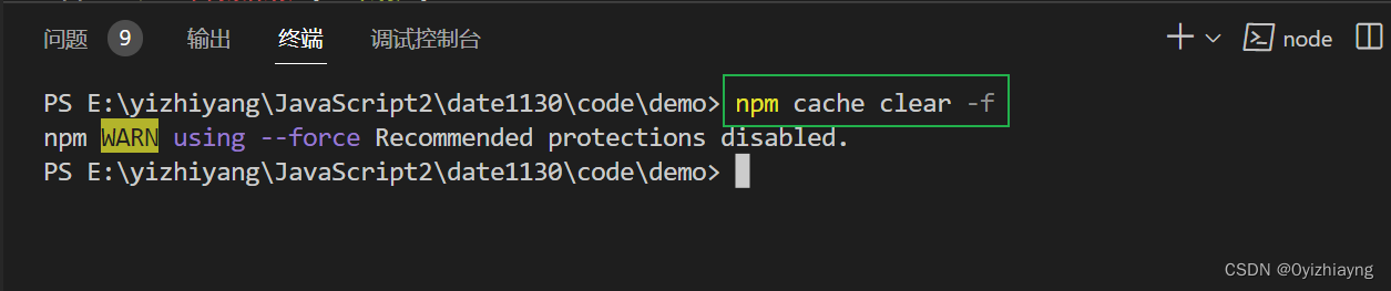 - 输入命令 npm cache clear -f 清除完成, 没有任何反馈