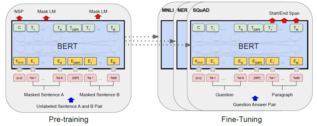 图8:BERT的Pre-training结构和Fine-Tuning结构