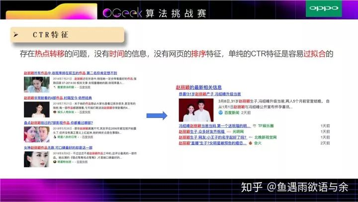 由于赛题的特殊性,给了我们验证集,通过观察训练集和验证集的数据,我们发现存在热点转移的情况,例如关于某个明星,title 1是高热点转换网页,可是到了验证集中,这位明星的高热点title是另外的一些网页,说明实时热点性比较强。因此我们对CTR的使用方法进行如下调研。