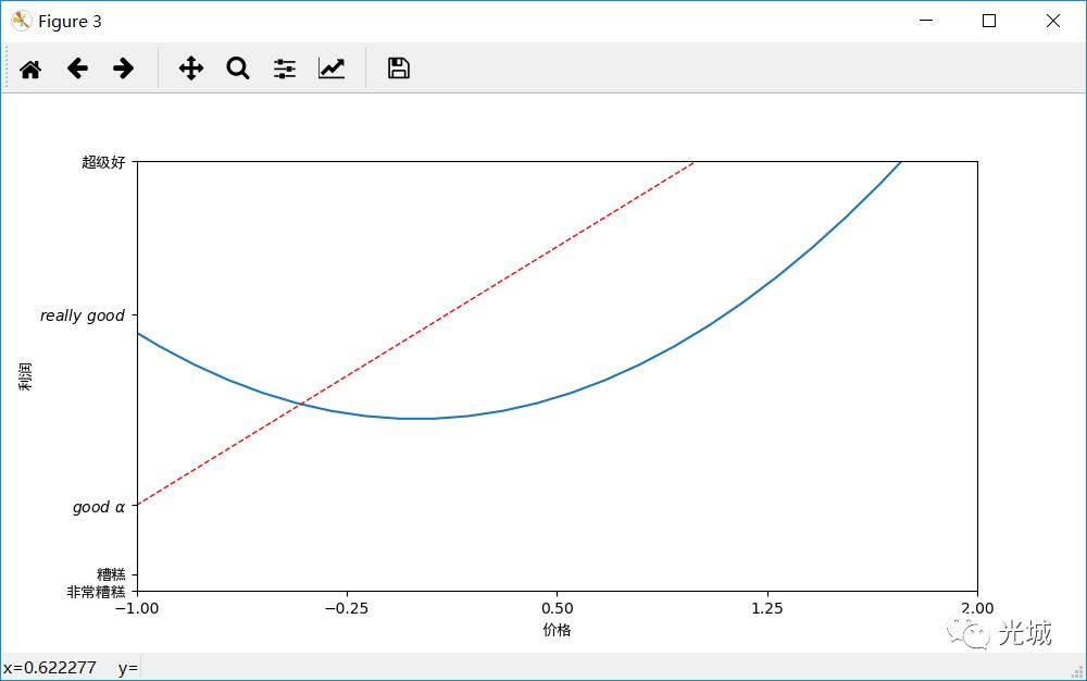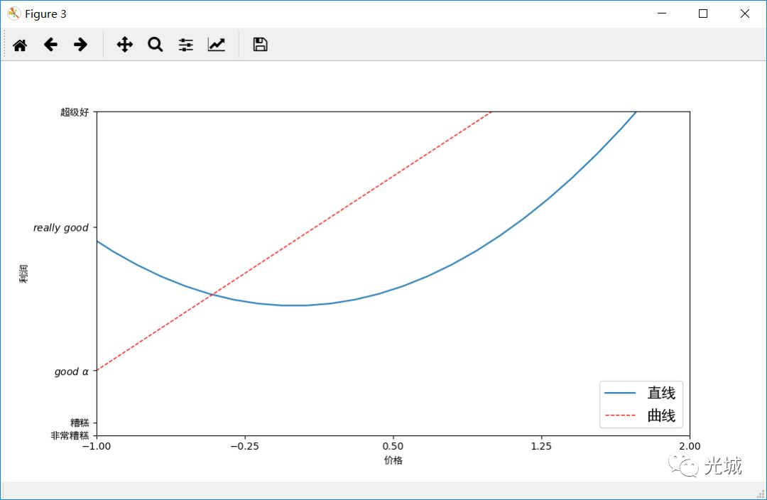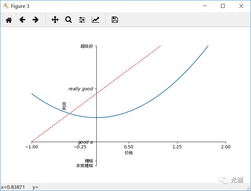 plt.xticks(new_ticks)plt.yticks([-2,-1.8,-1,1.22,3.],['非常糟糕','糟糕',r'$good\ \alpha$',r'$really\ good$','超级好'],fontproperties='SimHei')