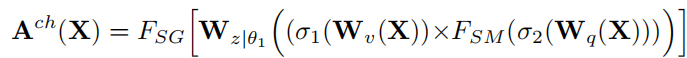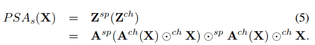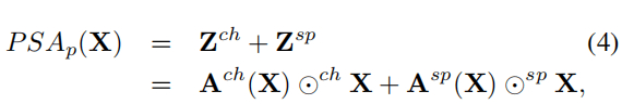 如上图所示,PSA分为两个分支,通道分支和空间分支,通道分支的权重计算公式如下: