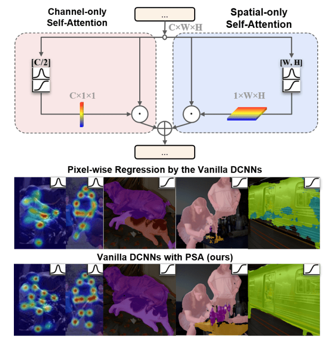 基于双重注意力机制,本文针对Pixel-wise regression的任务,提出了一种更加精细的双重注意力机制——极化自注意力(Polarized Self-Attention)。作为一个即插即用的模块,在人体姿态估计和语义分割任务上,作者将它用在了以前的SOTA模型上,并达到了新的SOTA性能,霸榜COCO人体姿态估计和Cityscapes语义分割。
