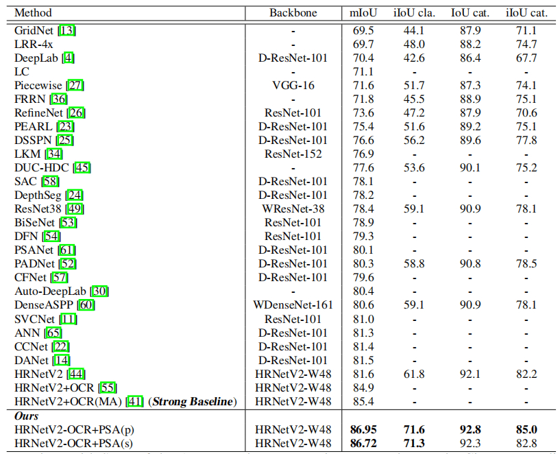 在Cityscapes语义分割数据集上,PSA基于HRNet-OCR结构,达到了86.95 mIoU的新SOTA性能。
