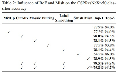 网络结构选择是为了在输入分辨率、网络层数、参数量、输出滤波器数之间寻求折中。作者研究表明:CSPResNeXt50在分类方面优于CSPDarkNet53,而在检测方面反而表现要差。