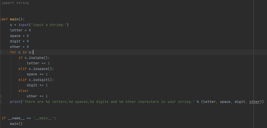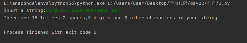 输入一行字符,分别统计出其中英文字母、空格、数字和其它字符的个数。