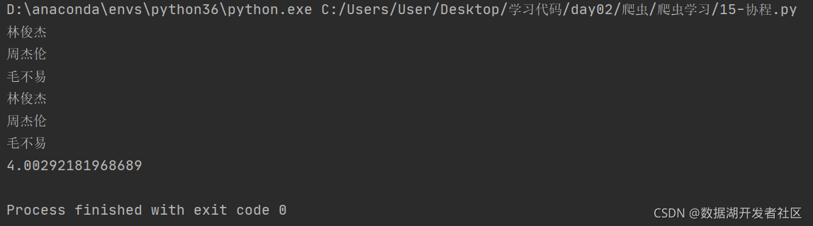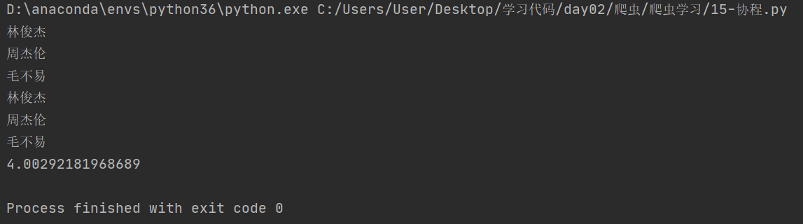 异步操作输出结果:4秒的时间基本为最长等待时间,两个时间对比可看出异步操作为同时启动多个任务。