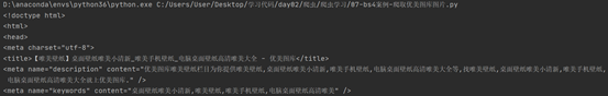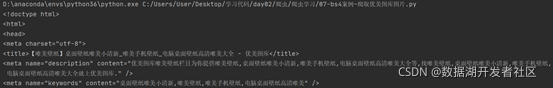 1.bs4解析:BS4全称是Beatiful Soup,它提供一些简单的、python式的函数用来处理导航、搜索、修改分析树等功能。它是一个工具箱,自动将输入文档转换为Unicode编码,输出文档转换为utf-8编码。