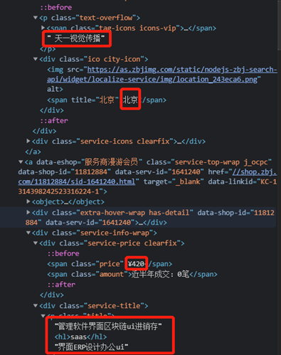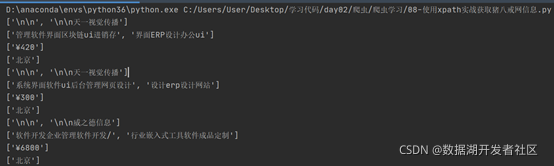 4.对输出结果进行整理,输出适合格式,完成猪八戒网信息获取。