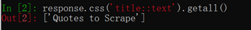 另一件事是呼叫的结果 .getall() 是一个列表:选择器可能返回多个结果,因此我们提取所有结果。只想要第一个结果时,如本例所示: