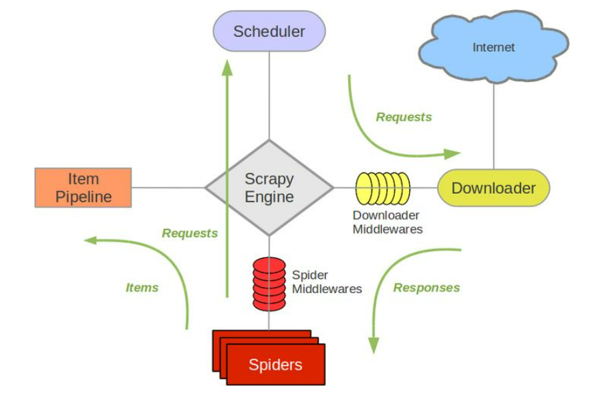 调度器从引擎接受request并将他们入队,以便之后引擎请求他们时提供给引擎。