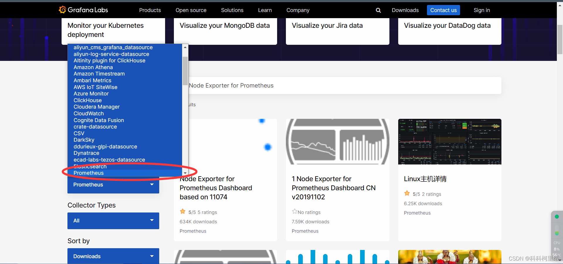 选择数据源为Prometheus,然后我们搜索Node Exporter for Prometheus,选择一个合适的版本,若后续失败,可以考虑更换一个。