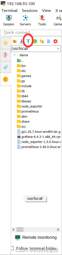 将下载的安装包上传至被监控主机(192.168.93.101)的 /usr/local 目录下
