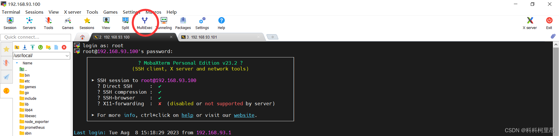 建议使用MobaXterm连接两台服务器,然后选择多窗口一起操作