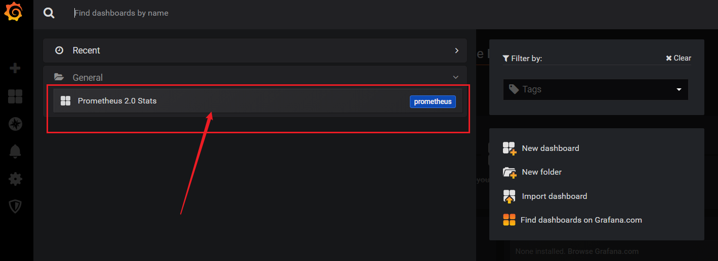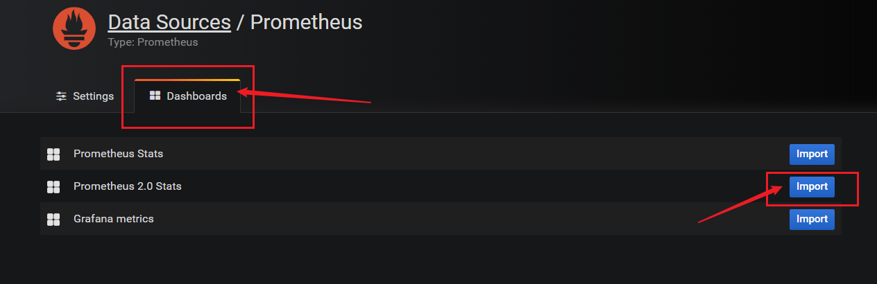 点击Dashboards选项卡,选择Prometheus 2.0 Stats