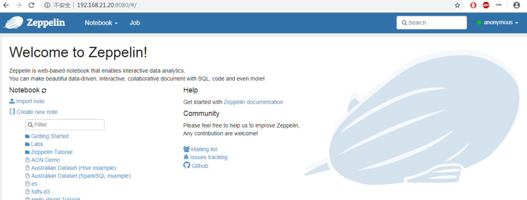 Zeppelin官方网站 http://zeppelin.apache.org/ Github地址 https://github.com/apache/zeppelin 中文文档:https://zeppelin.apachecn.org/#/docs/2
