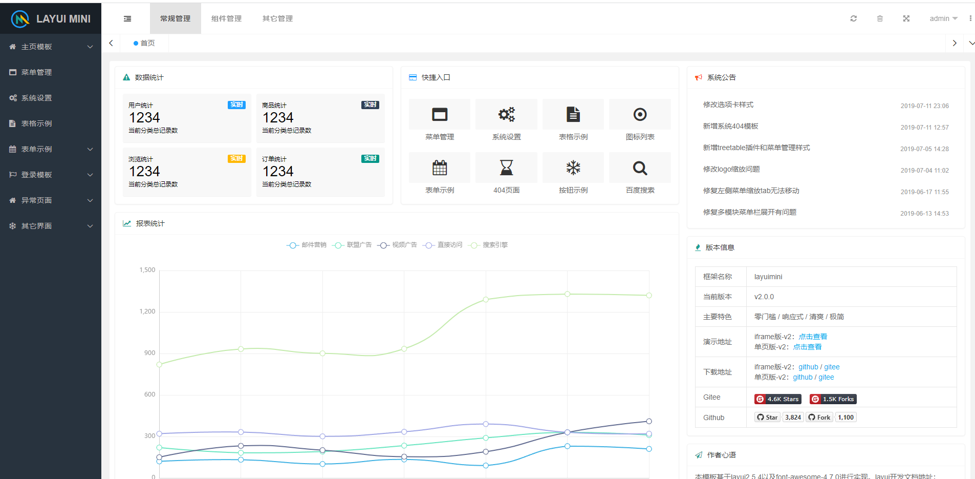 GitHub - zhongshaofa/layuimini: 后台admin前端模板,基于 layui 编写的最简洁、易用的后台框架模板。只需提供一个接口就直接初始化整个框架,无需复杂操作。👉