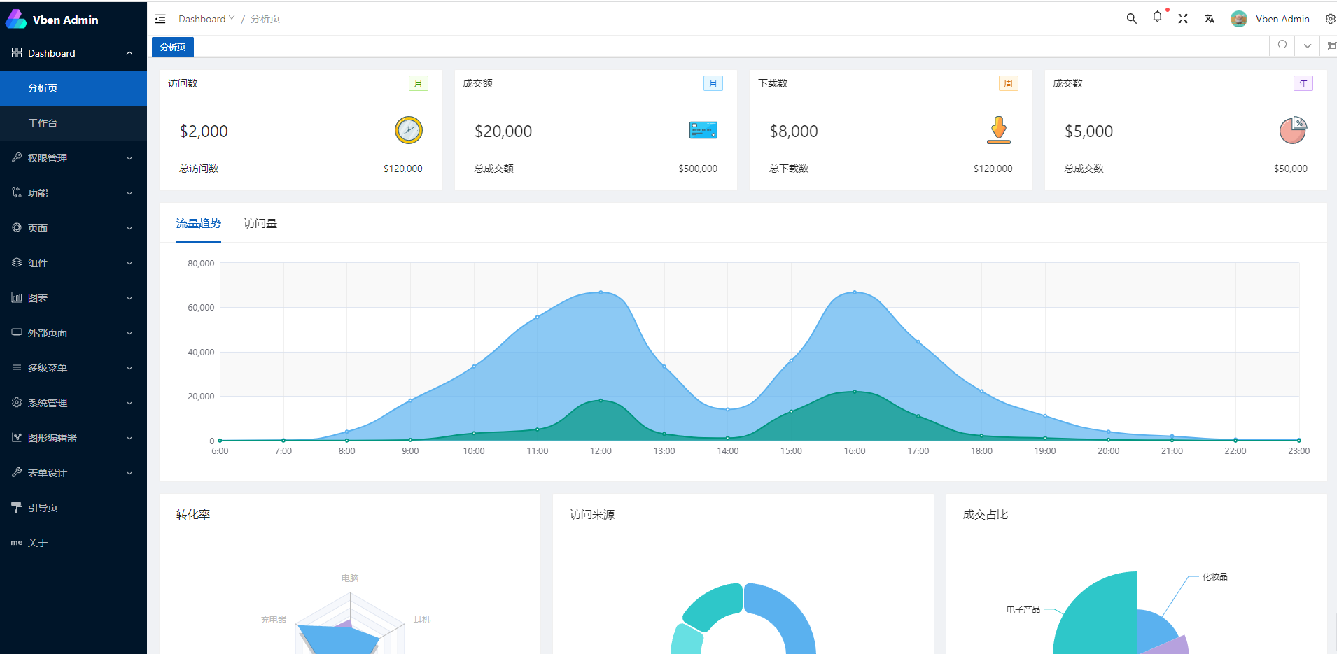 Vue Vben Admin 是一个免费开源的中后台模版。使用了最新的vue3,vite2,TypeScript等主流技术开发,开箱即用的中后台前端解决方案,也可用于学习参考。