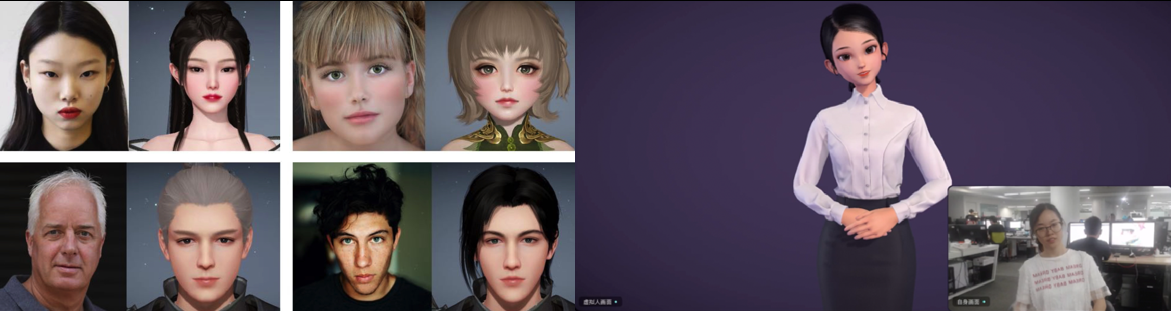 依托于网易伏羲行业首创的 AI 智能捏脸技术,平台会对肖像照片和人脸特征进行精准还原,并通过肖像网络分析人脸特征,重建人脸三维信息,结合风格化网络学习数据,生成特定风格的容颜,如发型、肤色、五官。