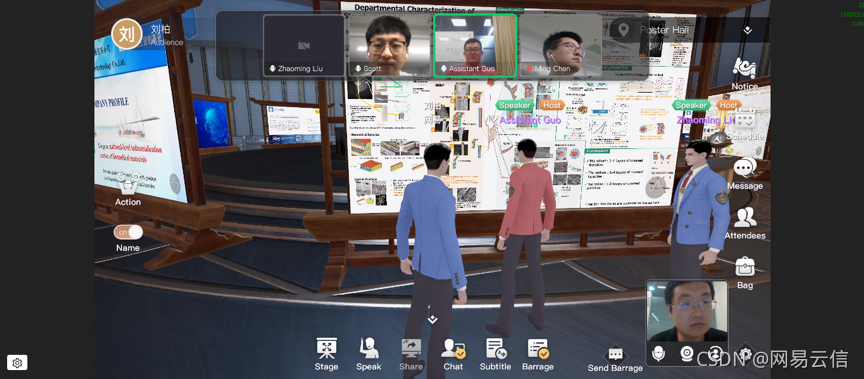 考虑到虚拟会议世界更加贴近现实会议场景,会议主办方可以在“瑶台”中自由选择活动场地内展板数量、布局与内容;活动场地座位数量与布局;场地加载广告;大屏幕、展板宣传广告;活动场地冠名等,同时“瑶台”还支持后台自主管理会议和会议数据分析等功能